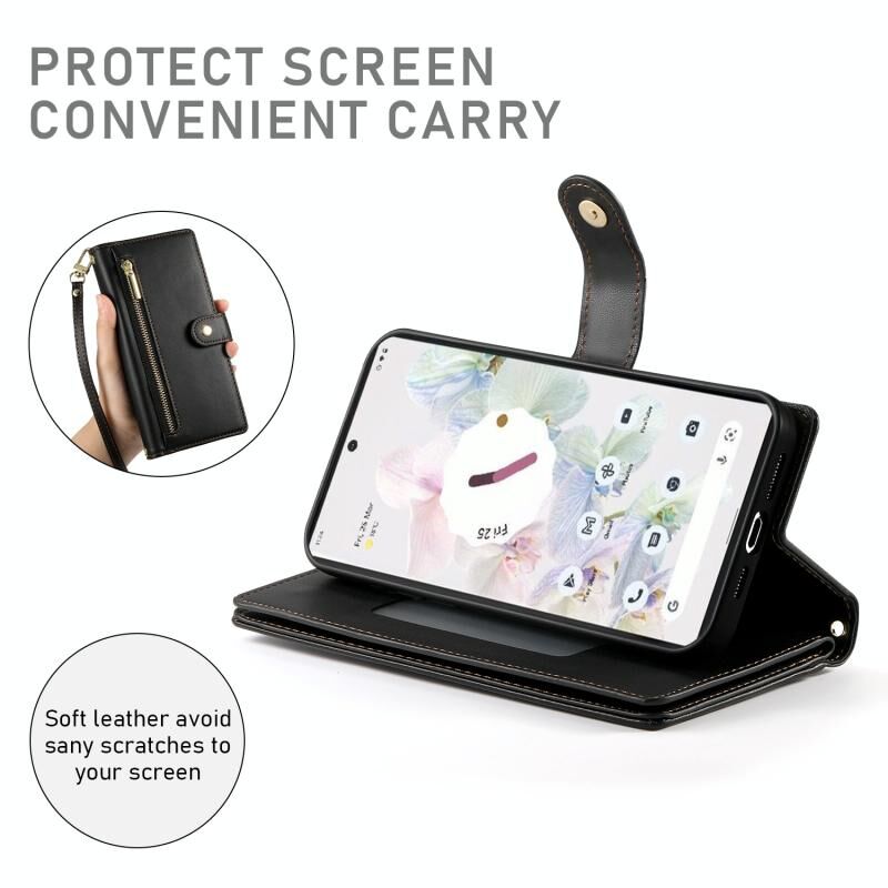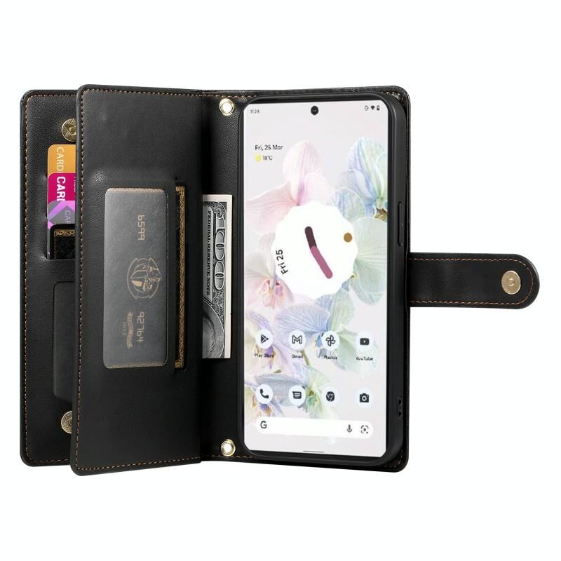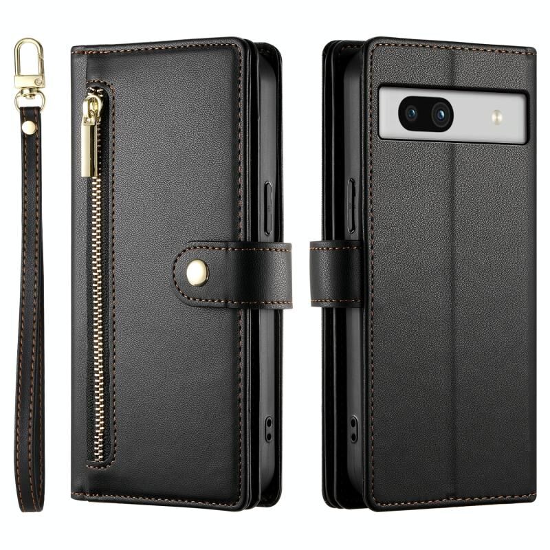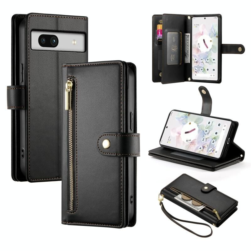 Για το Google Pixel 7a Εννέα κάρτα-θυρίδα φερμουάρ πορτοφόλι τσάντα δερμάτινη θήκη τηλεφώνου (μαύρο)