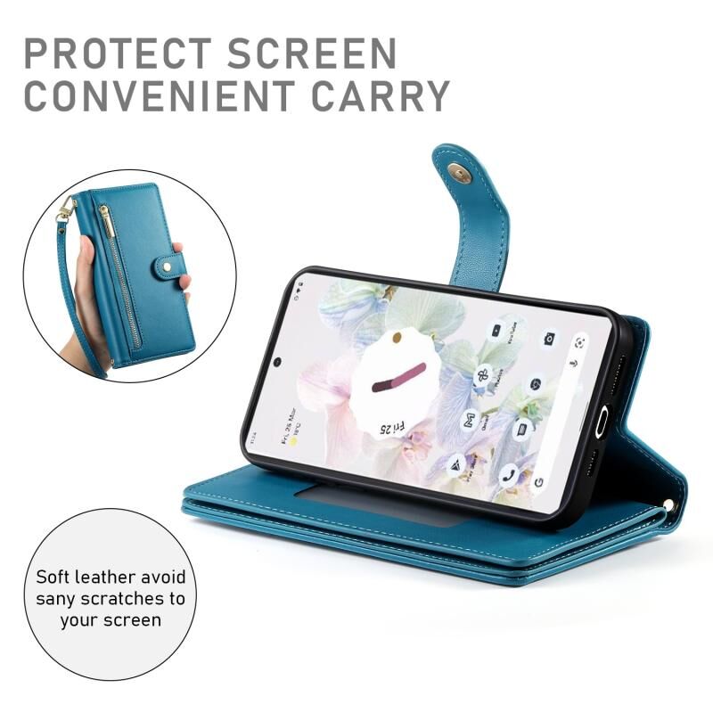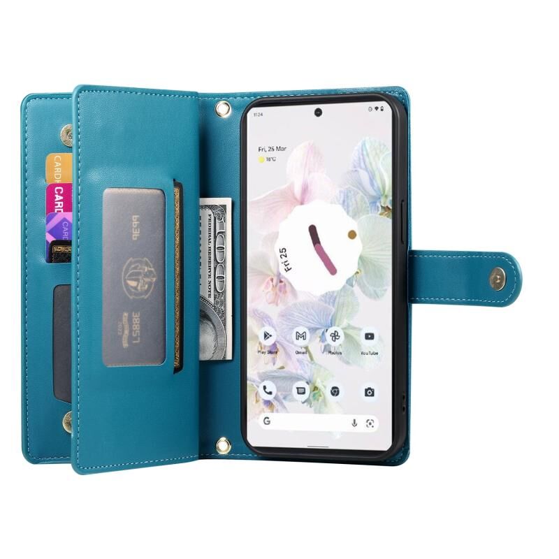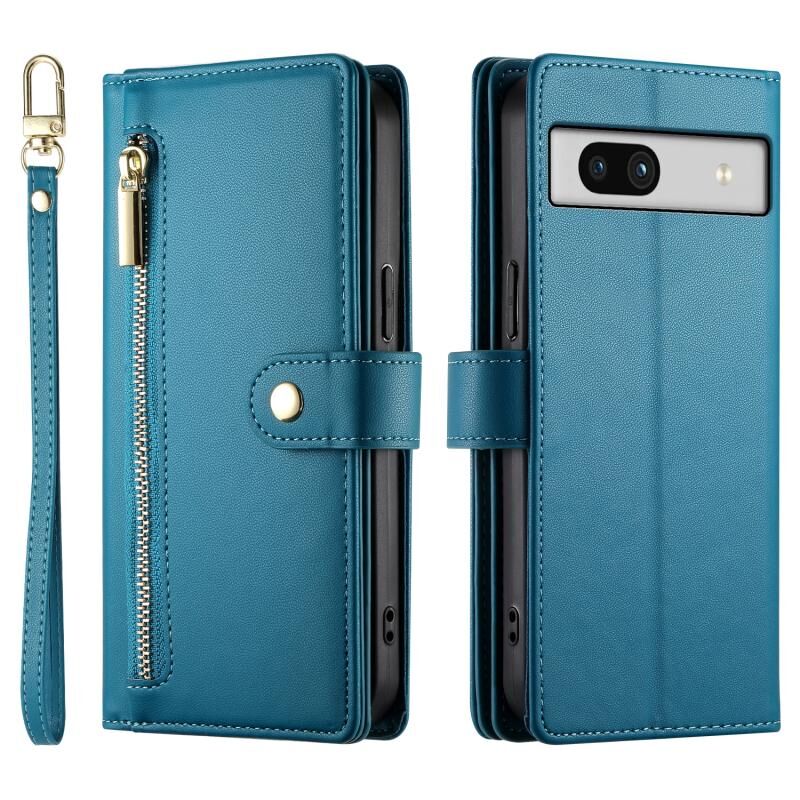 Για το Google Pixel 7a Nine Card-slot φερμουάρ πορτοφόλι τσάντα δερμάτινη θήκη τηλεφώνου (μπλε)