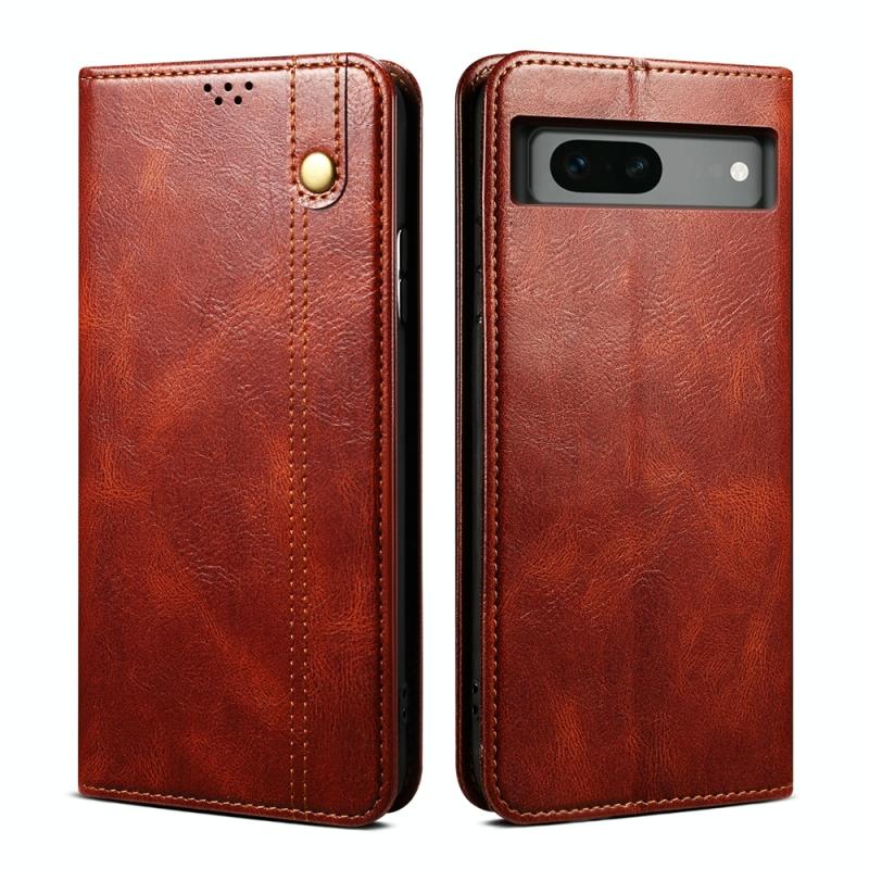 Θήκη τηλεφώνου από δέρμα με υφή λαδιού και τρελού αλόγου για Google Pixel 7a (Καφέ)