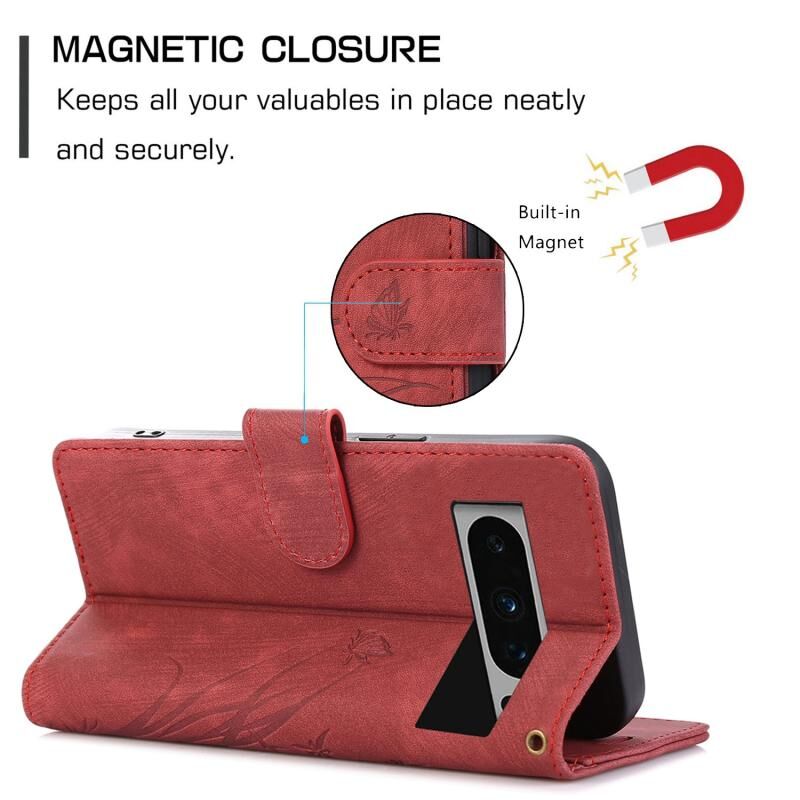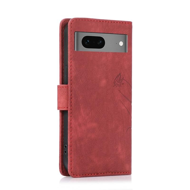 Θήκη τηλεφώνου από δέρμα με ανάγλυφο σχέδιο πεταλούδας ορχιδέας για Google Pixel 7a (Μαύρο)