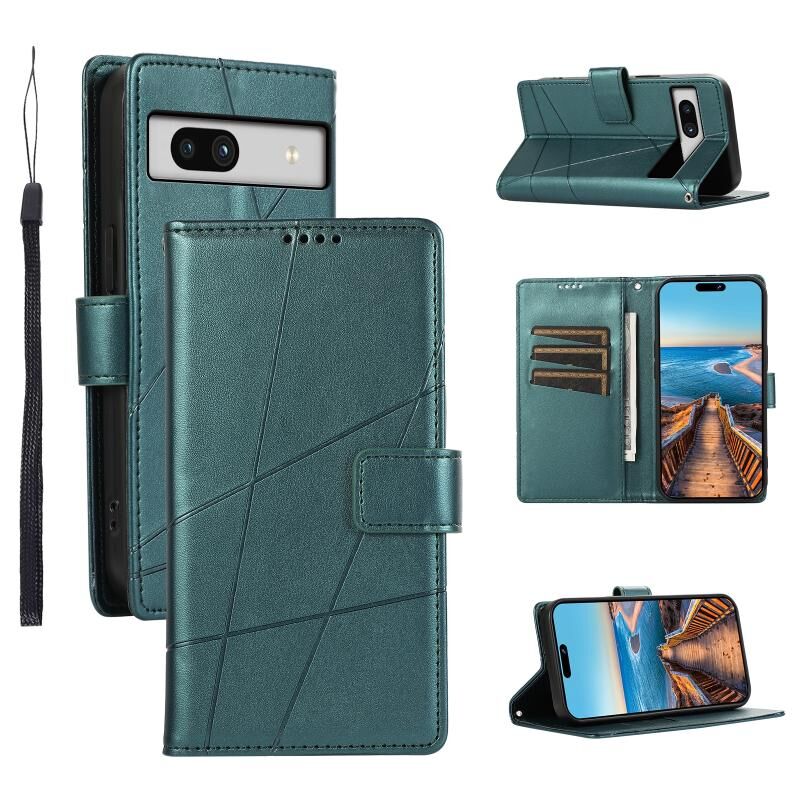 For Google Pixel 7a PU Genuine Leather Texture Embossed Line Phone Case(Green)