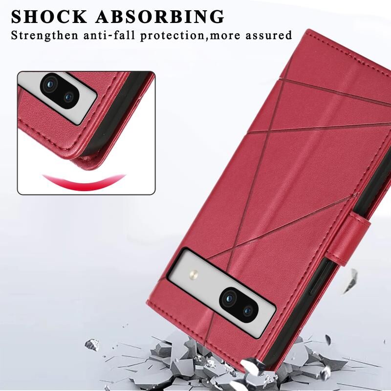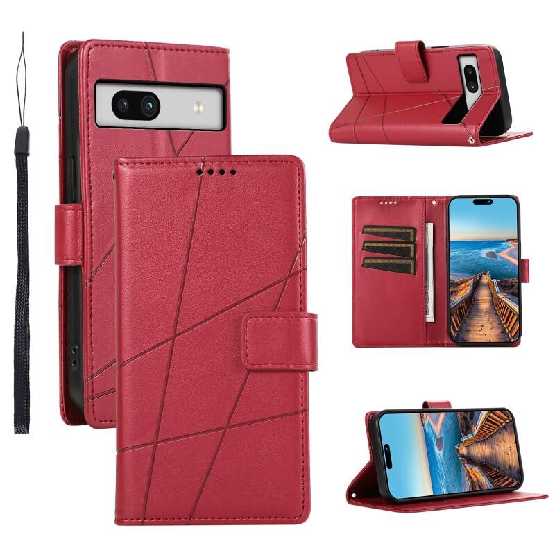 For Google Pixel 7a PU Genuine Leather Texture Embossed Line Phone Case(Red)