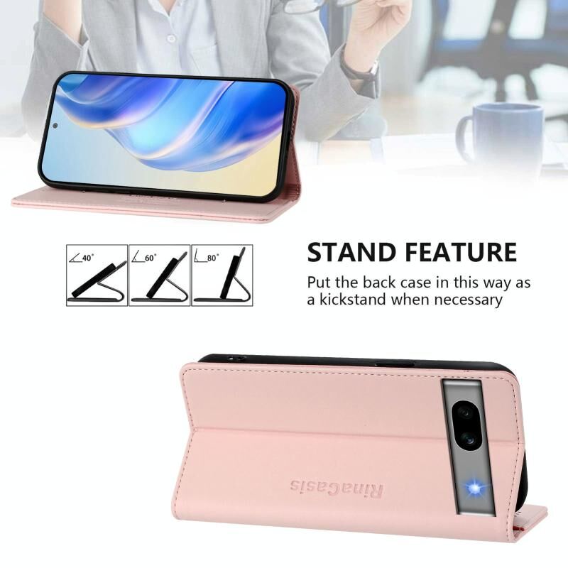 For Google Pixel 7a RC01 Dual-Folded Magnetic Suction RFID Leather Phone Case(Pink)