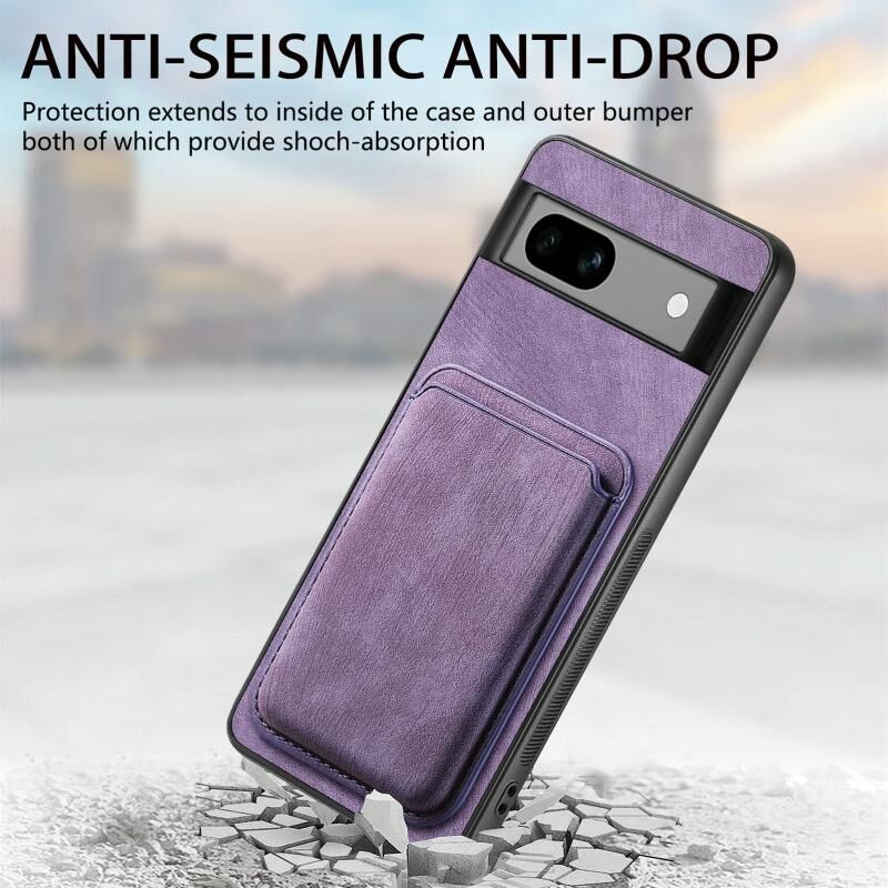 Για το Google Pixel 7a Ρετρό δερμάτινη τσάντα κάρτας μαγνητική θήκη τηλεφώνου (μωβ)