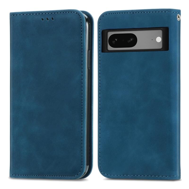 Για το Google Pixel 7A Ρετρό δέρμα αίσθηση μαγνητική Flip δέρμα τηλέφωνο υπόθεση (μπλε)