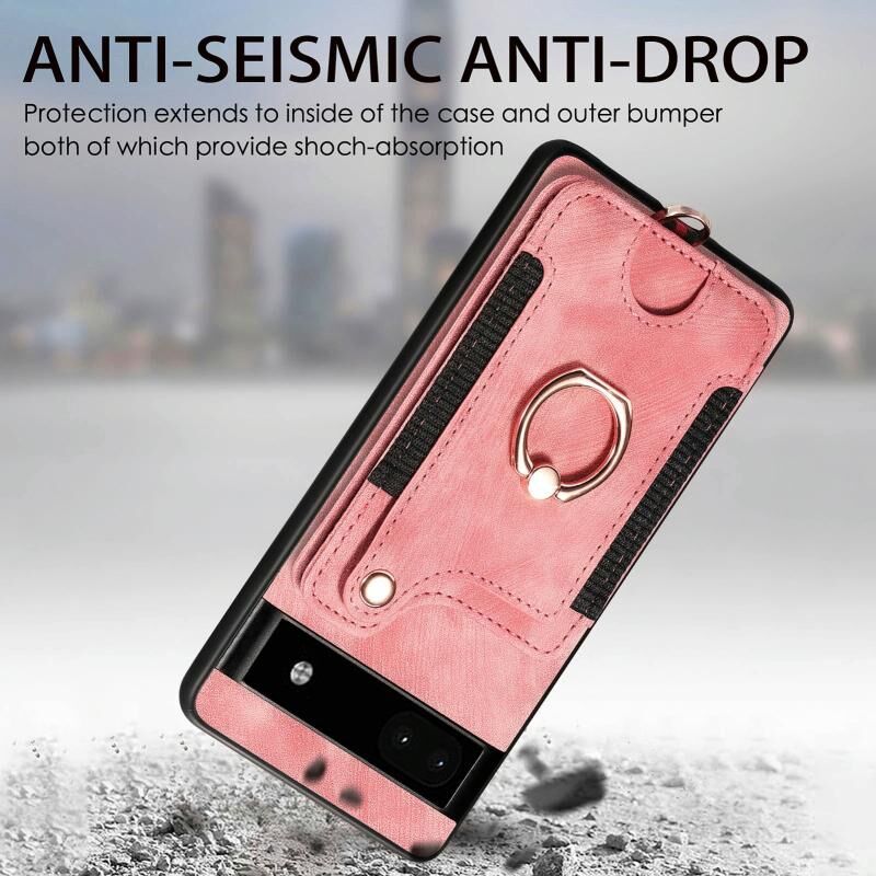 Θήκη τηλεφώνου Google Pixel 7a με ρετρό υφή, δακτύλιο και πολλαπλές θήκες για κάρτες RFID (Ροζ)
