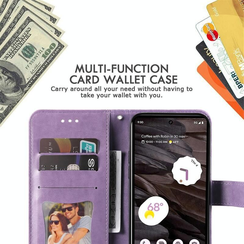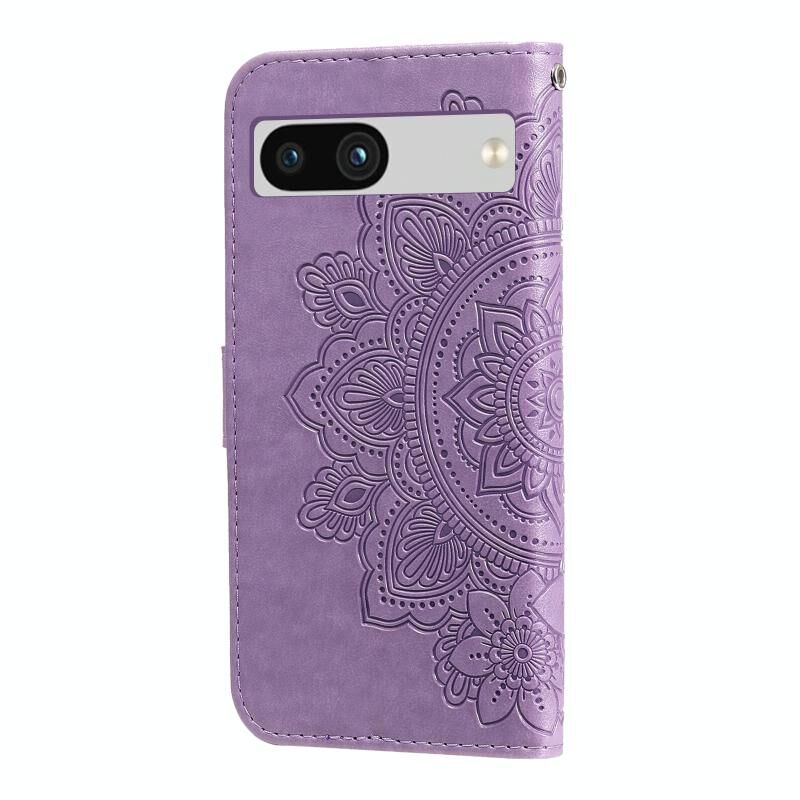 Θήκη τηλεφώνου από δέρμα με ανάγλυφα επτάφυλλα λουλούδια για Google Pixel 7a (Ανοιχτό Μωβ)