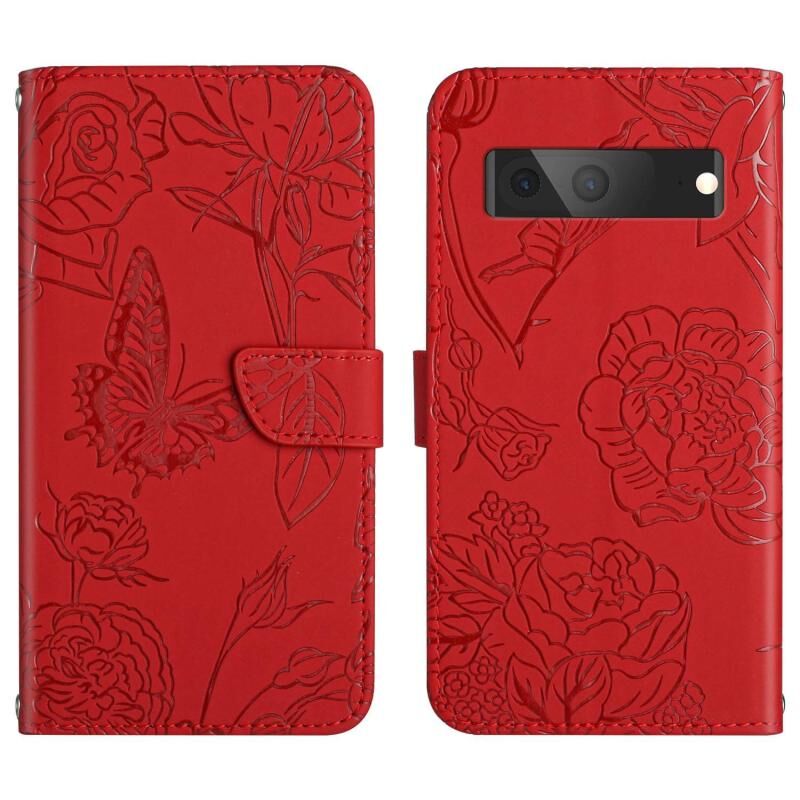 Για το Google Pixel 7A Skin Feel Πεταλούδα Peony ανάγλυφη δερμάτινη θήκη τηλεφώνου (κόκκινο)