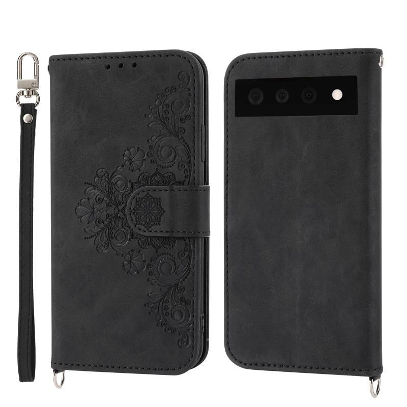 Θήκη τηλεφώνου από δέρμα με ανάγλυφα λουλούδια και αίσθηση δέρματος για Google Pixel 7A (Μαύρο)