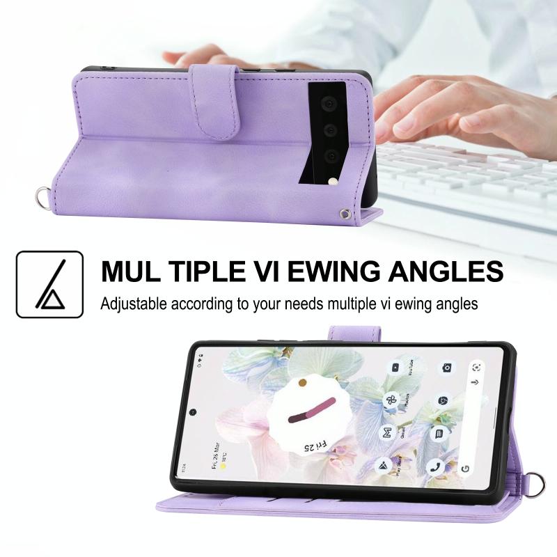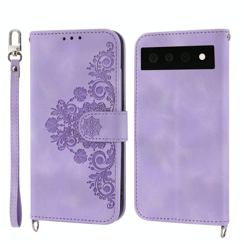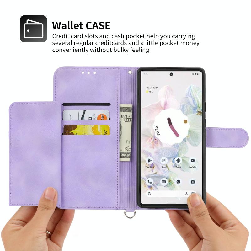 Θήκη τηλεφώνου από δέρμα με ανάγλυφα λουλούδια και αίσθηση δέρματος για Google Pixel 7A (Μωβ)