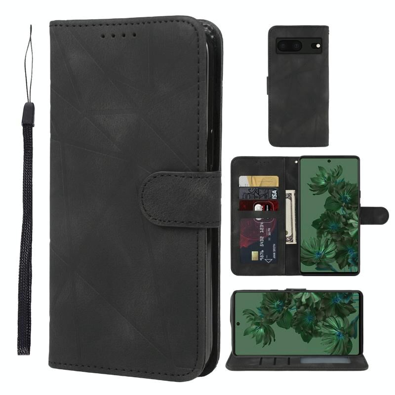 Για το Google Pixel 7a Skin Feel Γεωμετρικές γραμμές δερμάτινη θήκη τηλεφώνου (Μαύρο)