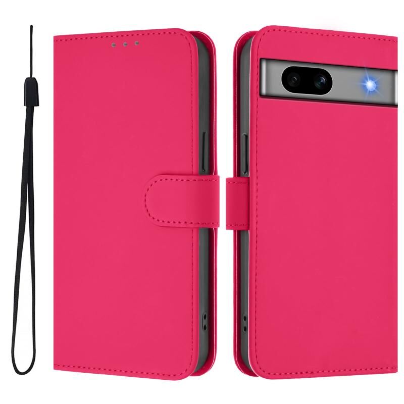 Για το Google Pixel 7a Skin Feel Solid Color Δερμάτινη θήκη τηλεφώνου με κορδόνι (Rose Red)