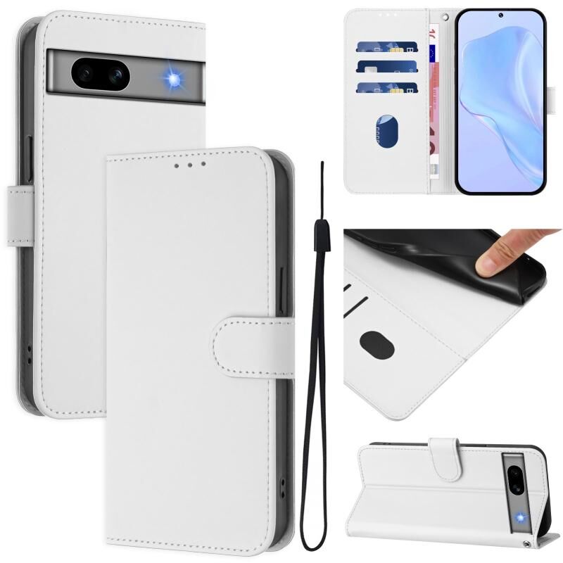 Για το Google Pixel 7a Skin Feel Solid Color Δερμάτινη θήκη τηλεφώνου με κορδόνι (λευκό)