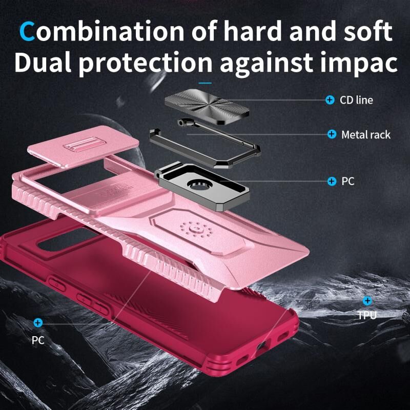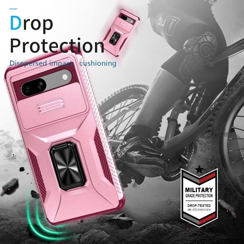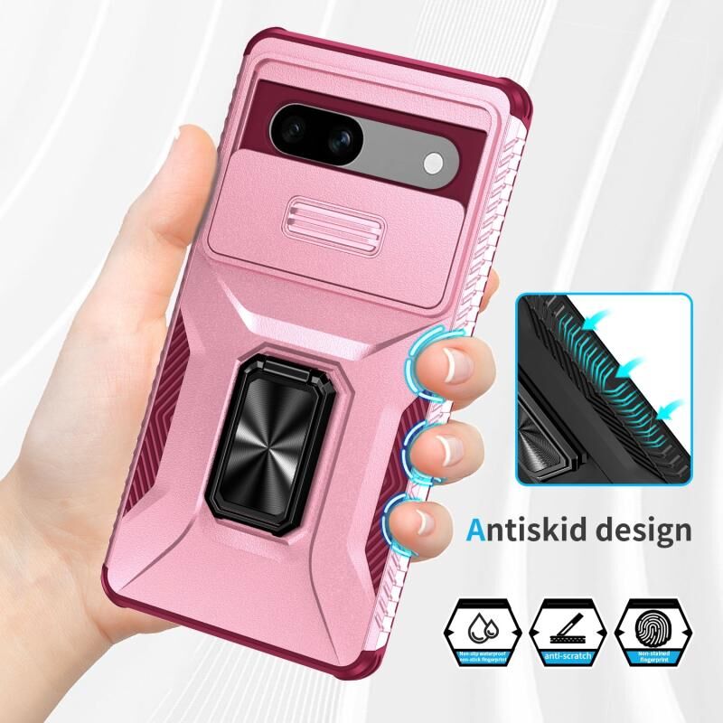 Για το Google Pixel 7a Συρόμενη θήκη τηλεφώνου με κάλυμμα κάμερας (ροζ + ροζ κόκκινο)