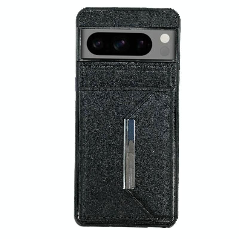 Για το Google Pixel 7a Αμιγές χρώμα μέταλλο πόρπη κάρτα υποδοχές τσάντα υπόθεση τηλεφώνου (μαύρο)
