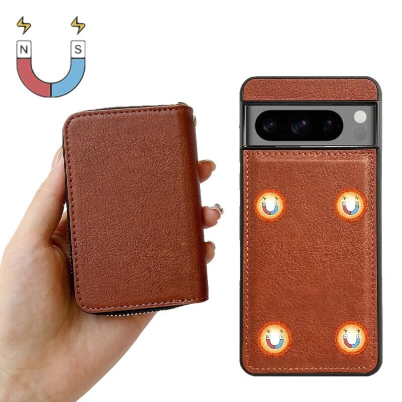 Για το Google Pixel 7a Αμιγές χρώμα φερμουάρ 11-κάρτα υποδοχές τσάντα υπόθεση τηλεφώνου με κορδόνι (καφέ)