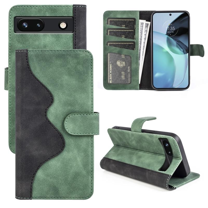 Για το Google Pixel 7a Stitching οριζόντια Flip δέρμα τηλέφωνο υπόθεση (πράσινο)