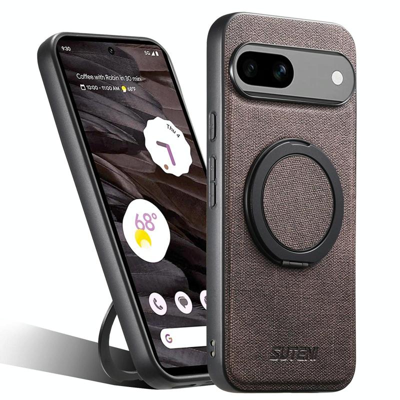 For Google Pixel 7a Suteni G3 360 Rotation Holder MagSafe Denim Leather Back Phone Case(Brown) (Suteni)