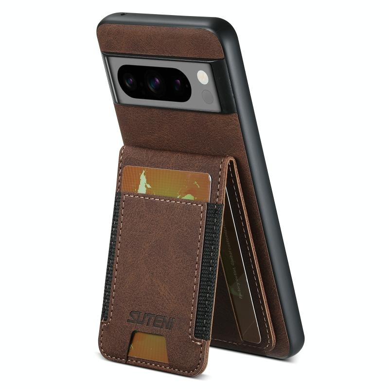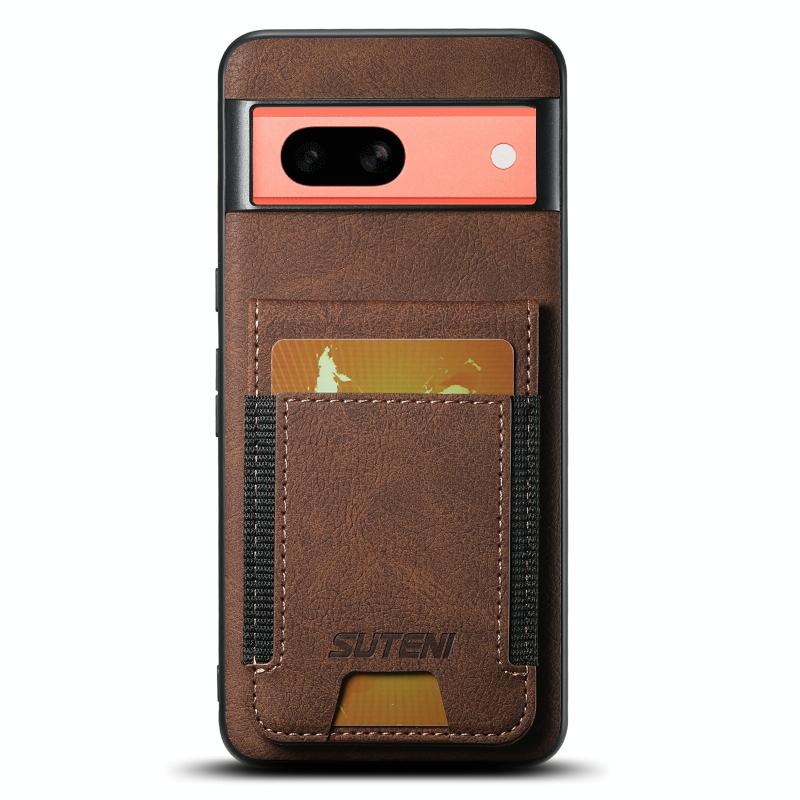 For Google Pixel 7a Suteni H03 Litchi Leather Card Bag Stand Back Phone Case(Brown) (Suteni)