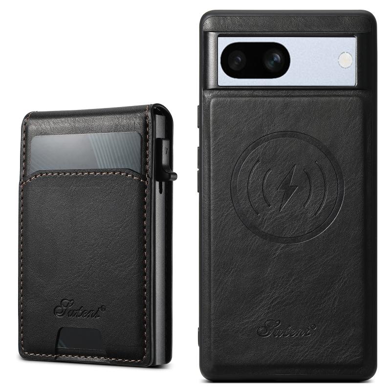 For Google Pixel 7a Suteni H19 Oil Wax 2-in-1 MagSafe Removable Card Box Back Phone Case(Black) (Suteni)