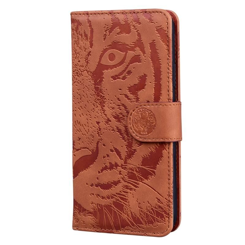 Για το Google Pixel 7a Tiger ανάγλυφο μοτίβο Flip υπόθεση τηλεφώνου δέρμα (καφέ)