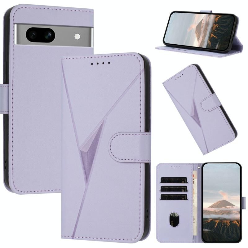 Για το Google Pixel 7a Τρίγωνο μοτίβο πόρπη κούμπωμα δερμάτινη θήκη τηλεφώνου (Light Purple)