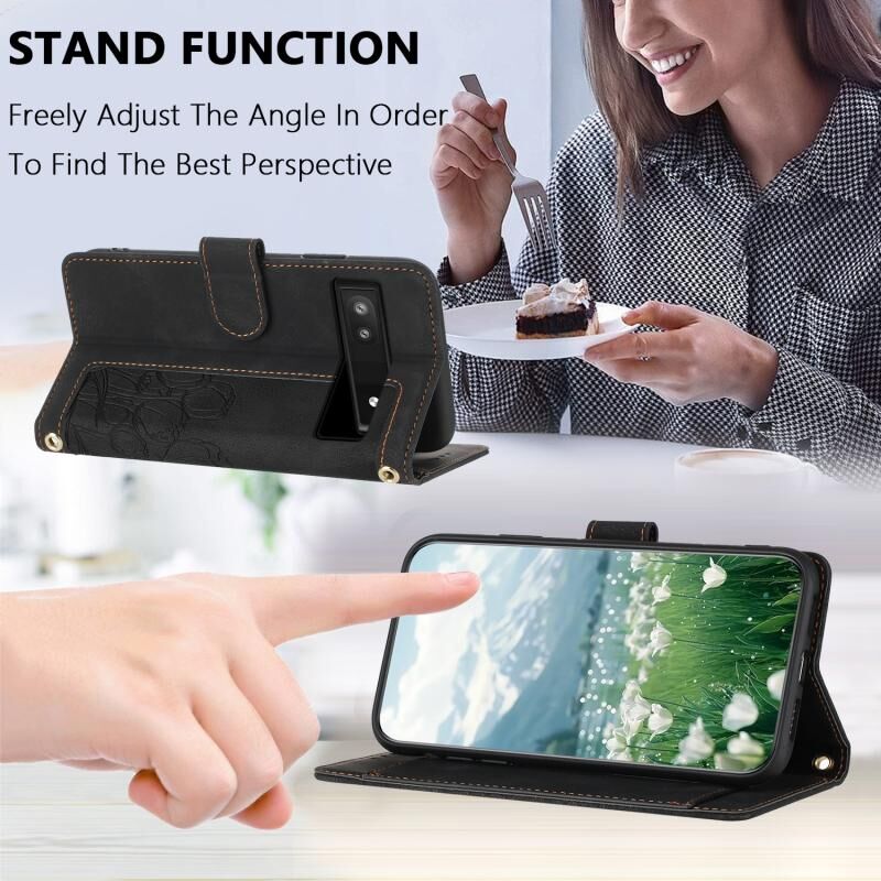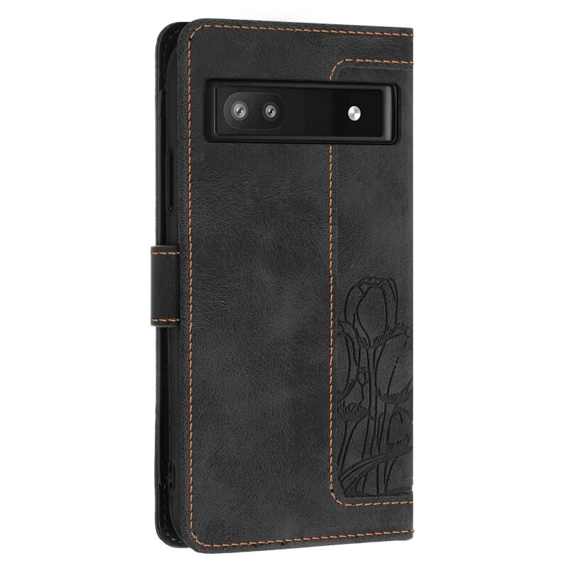 Θήκη τηλεφώνου από δέρμα με ανάγλυφα τουλίπες για Google Pixel 7a με κορδόνι (Ροζ)