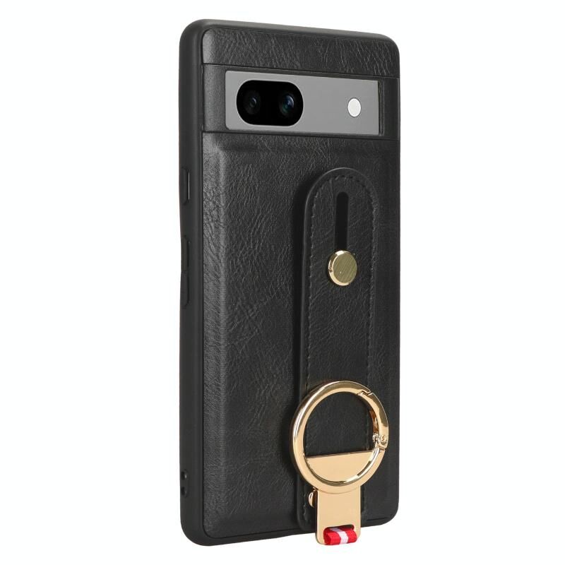 Για Google Pixel 7a Wristband δέρμα πίσω θήκη τηλεφώνου (μαύρο)