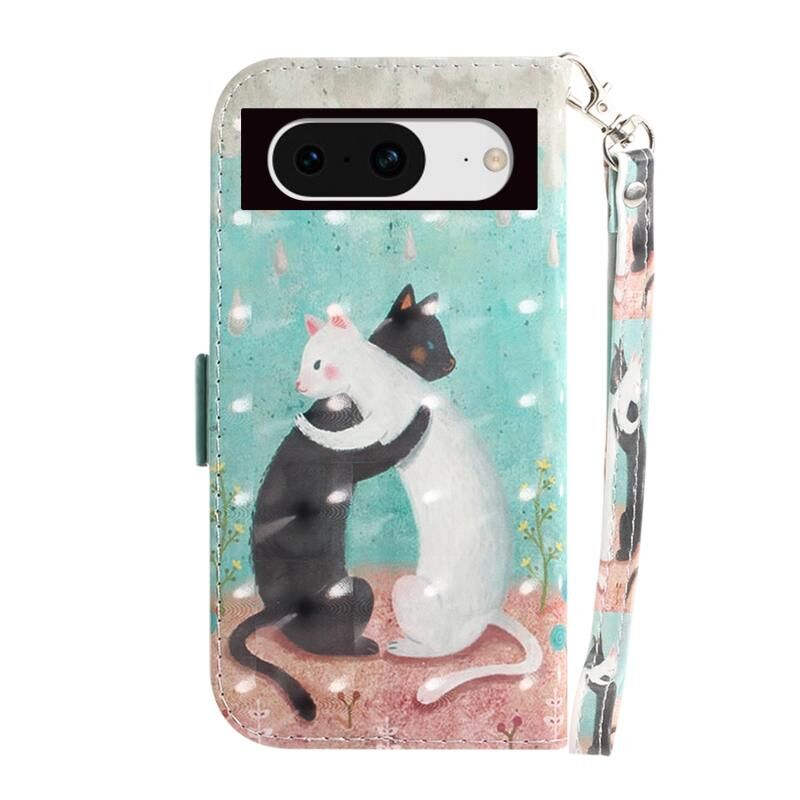 Θήκη τηλεφώνου δερμάτινη, οριζόντια, αναδιπλούμενη, έγχρωμη 3D για Google Pixel 8 (Μαύρη Λευκή Γάτα)