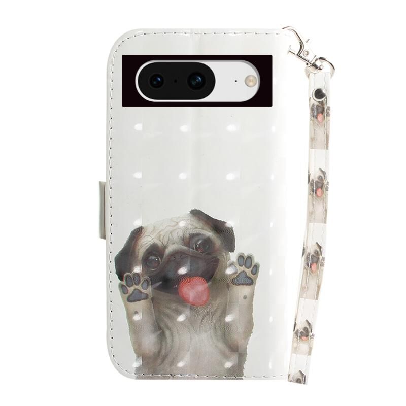 Θήκη τηλεφώνου δερμάτινη, οριζόντια, αναδιπλούμενη, έγχρωμη 3D για Google Pixel 8 (Pug)