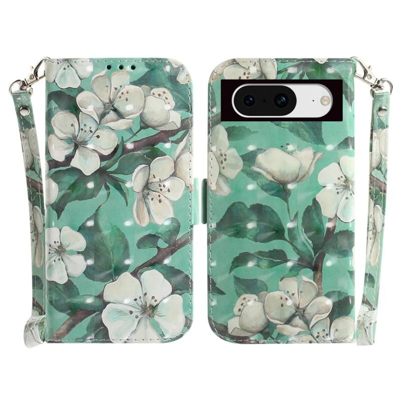Θήκη τηλεφώνου δερμάτινη, οριζόντια, αναδιπλούμενη, πολύχρωμη 3D για Google Pixel 8 (Ακουαρέλα Λουλούδι)
