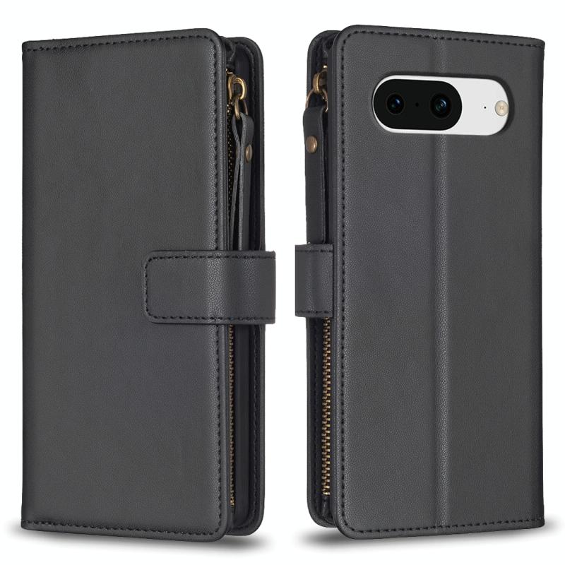 Θήκη τηλεφώνου Google Pixel 8 9 με δερμάτινο κάλυμμα, φερμουάρ και 9 θέσεις για κάρτες (ανοιχτό μωβ)