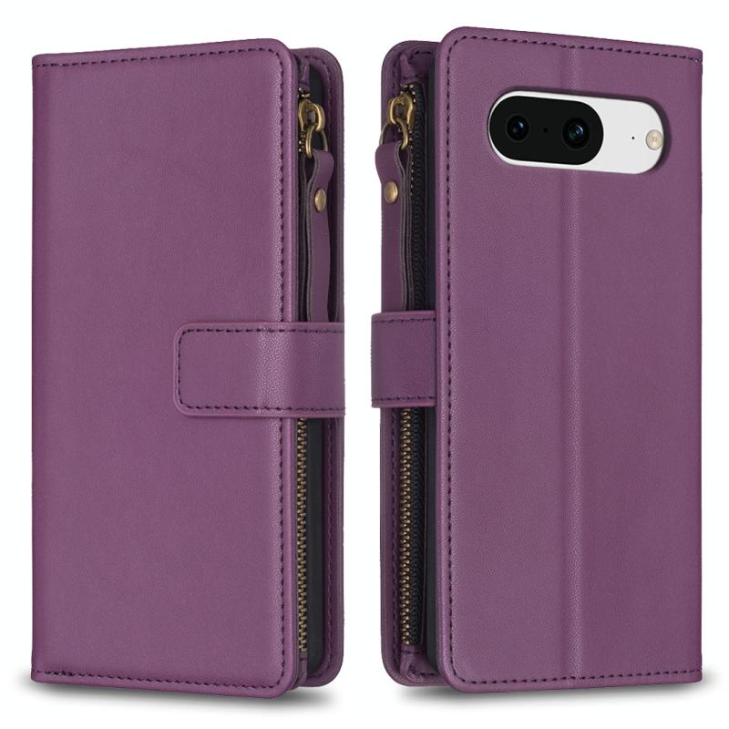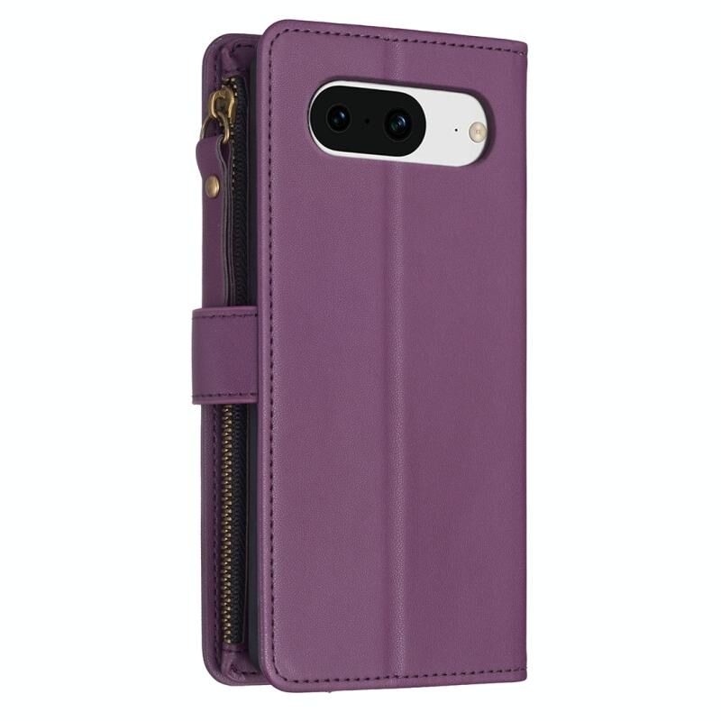Θήκη τηλεφώνου Google Pixel 8 9 με δερμάτινο κάλυμμα, φερμουάρ και 9 θέσεις για κάρτες (ανοιχτό μωβ)