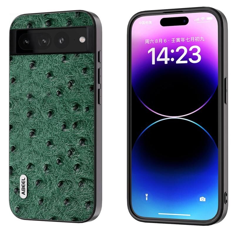 Θήκη τηλεφώνου από γνήσιο δέρμα με υφή στρουθοκάμπου για Google Pixel 8 ABEEL (Πράσινο)