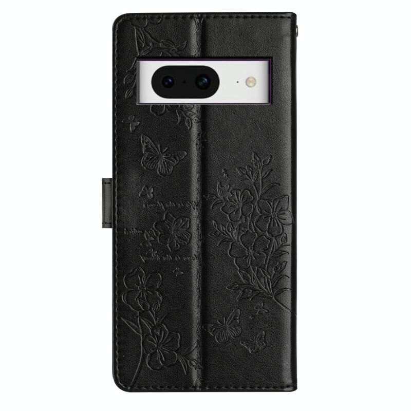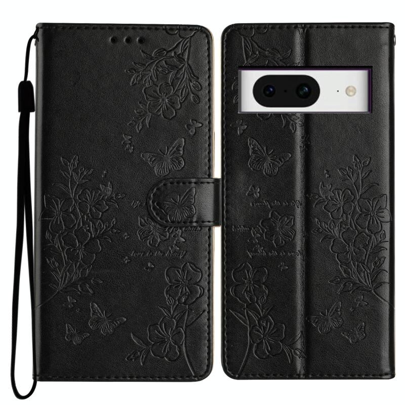 Θήκη τηλεφώνου από δέρμα για Google Pixel 8 Πεταλούδες και Λουλούδια (Χρυσό)