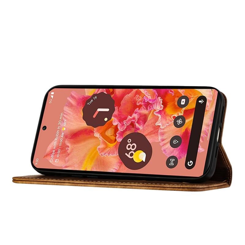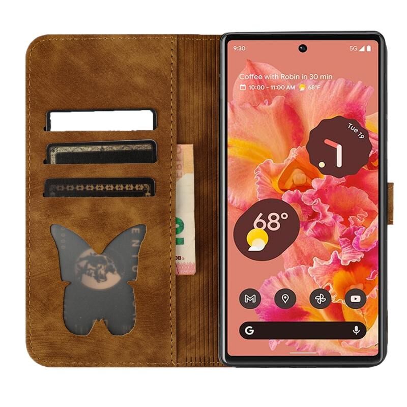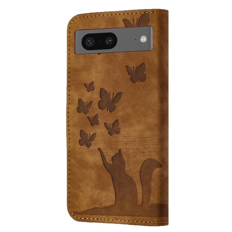 Θήκη τηλεφώνου από δέρμα με ανάγλυφο σχέδιο πεταλούδας και γάτας για Google Pixel 8 (Κόκκινο)