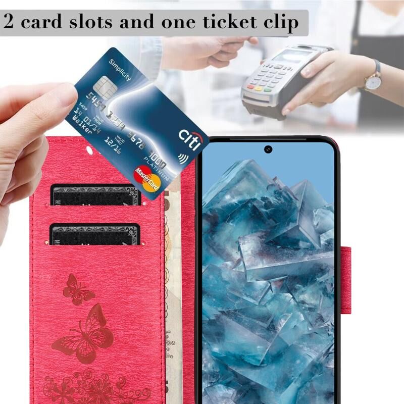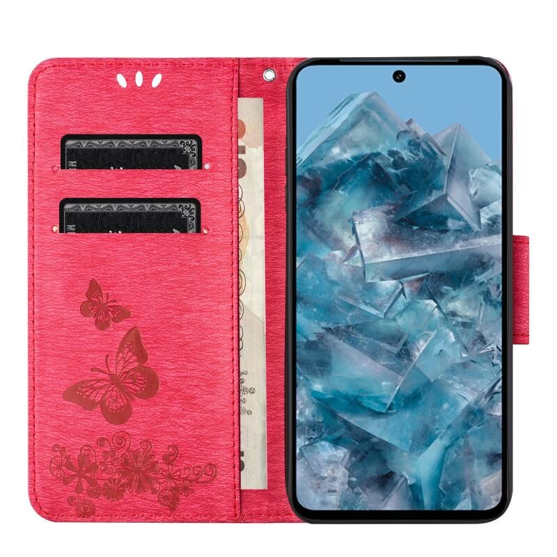 Θήκη τηλεφώνου από δέρμα με ανάγλυφο σχέδιο πεταλούδας για Google Pixel 8 (Μωβ)