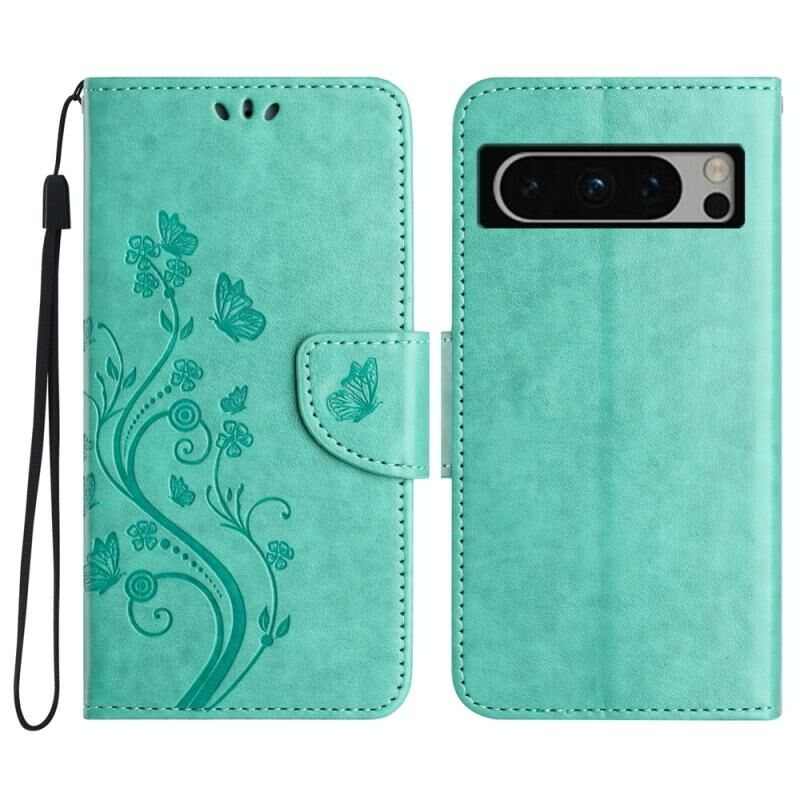 Για το Google Pixel 8 πεταλούδα λουλούδι μοτίβο Flip δέρμα τηλέφωνο υπόθεση (πράσινο)