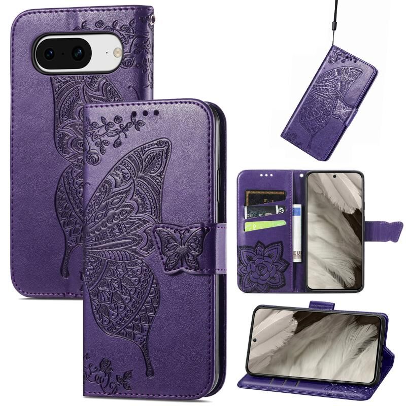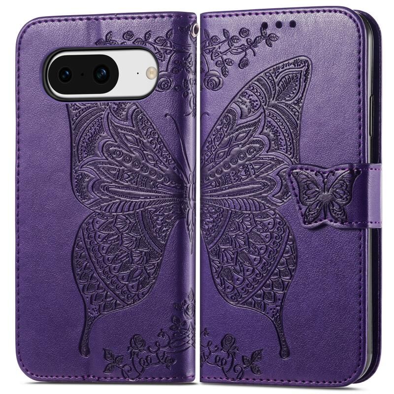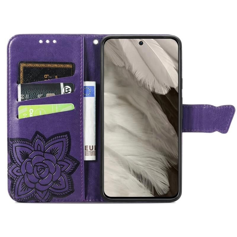Θήκη τηλεφώνου από δέρμα με ανάγλυφο σχέδιο πεταλούδας και λουλουδιών για Google Pixel 8 (Μαύρο)