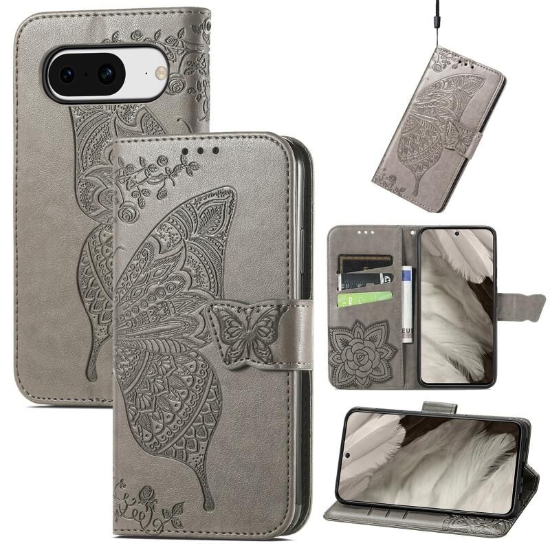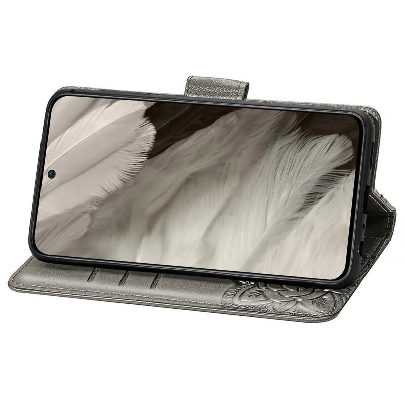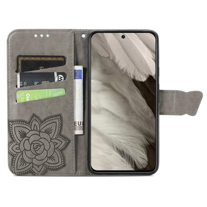 Θήκη τηλεφώνου από δέρμα με ανάγλυφο σχέδιο πεταλούδας και λουλουδιών για Google Pixel 8 (Μαύρο)