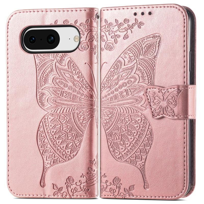 Θήκη τηλεφώνου από δέρμα με ανάγλυφο σχέδιο πεταλούδας και λουλουδιών για Google Pixel 8 (Μαύρο)