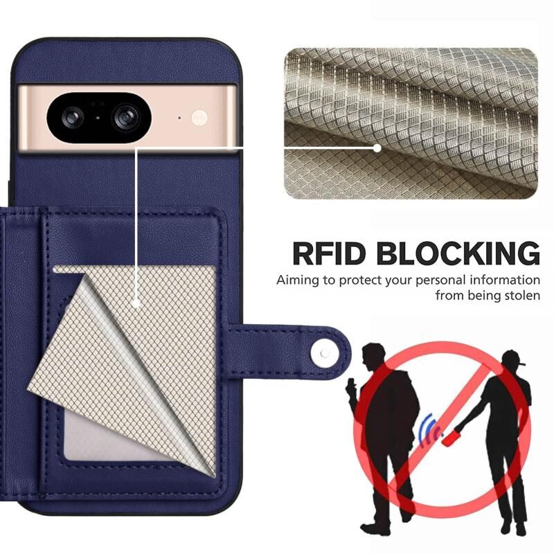 For Google Pixel 8 Button Card Bag RFID Anti-theft Phone Case(Blue)