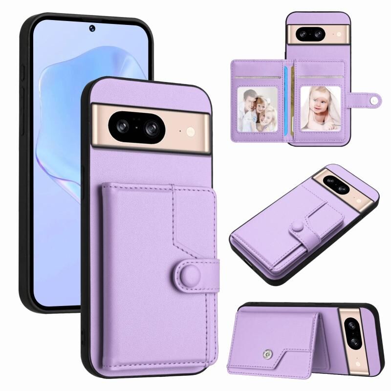 For Google Pixel 8 Button Card Bag RFID Anti-theft Phone Case(Purple)