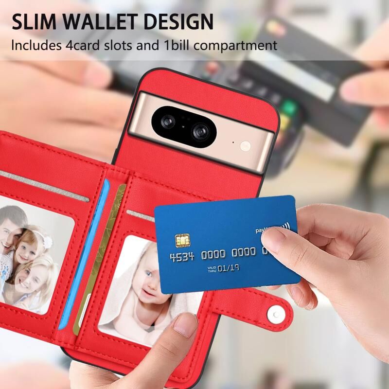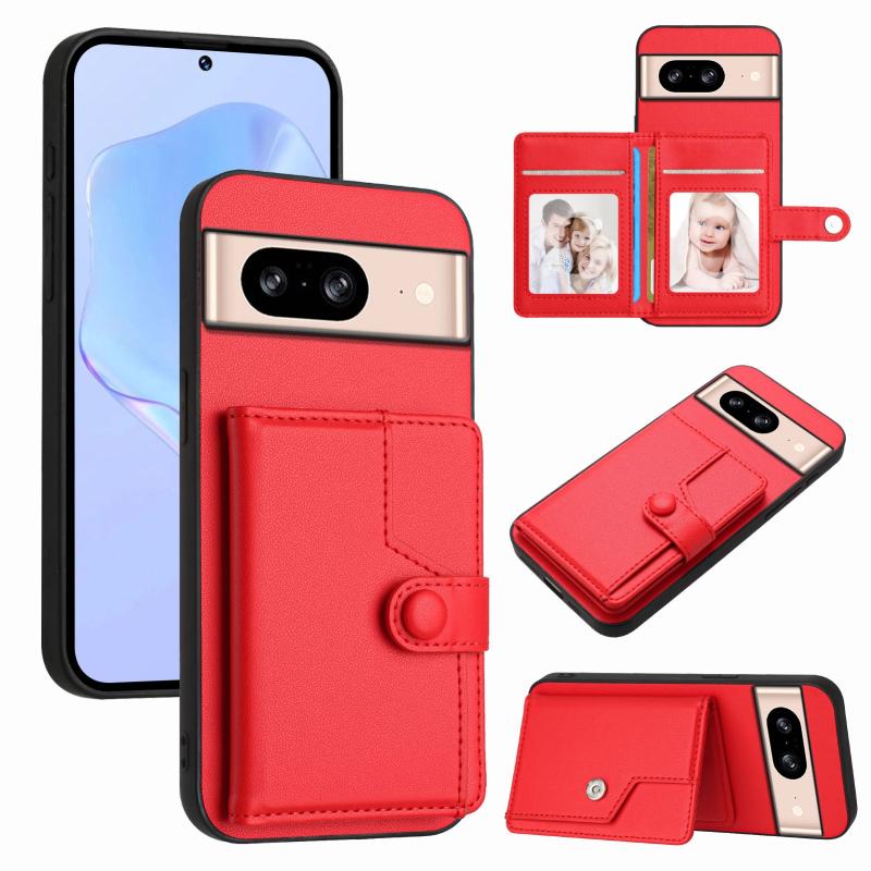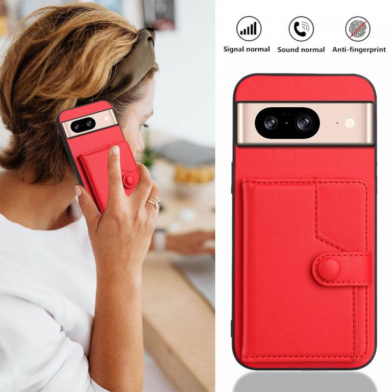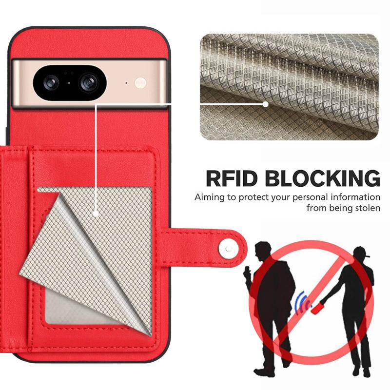 For Google Pixel 8 Button Card Bag RFID Anti-theft Phone Case(Red)