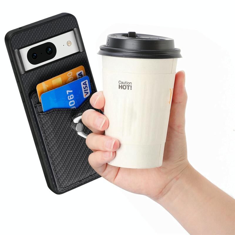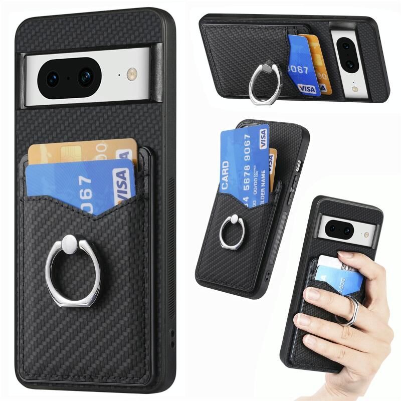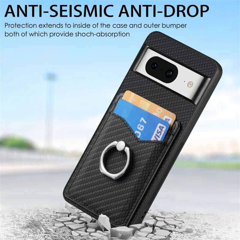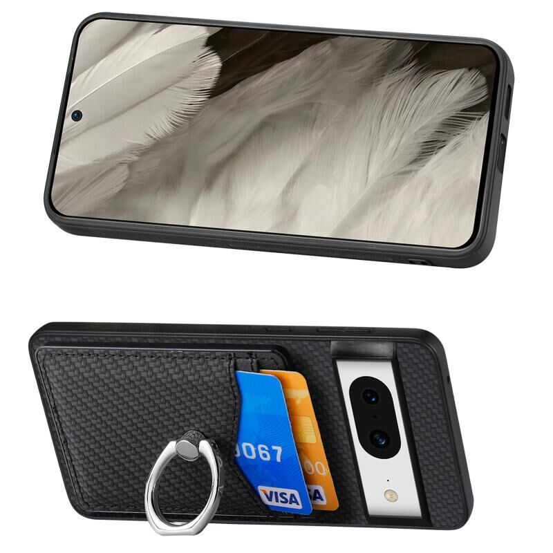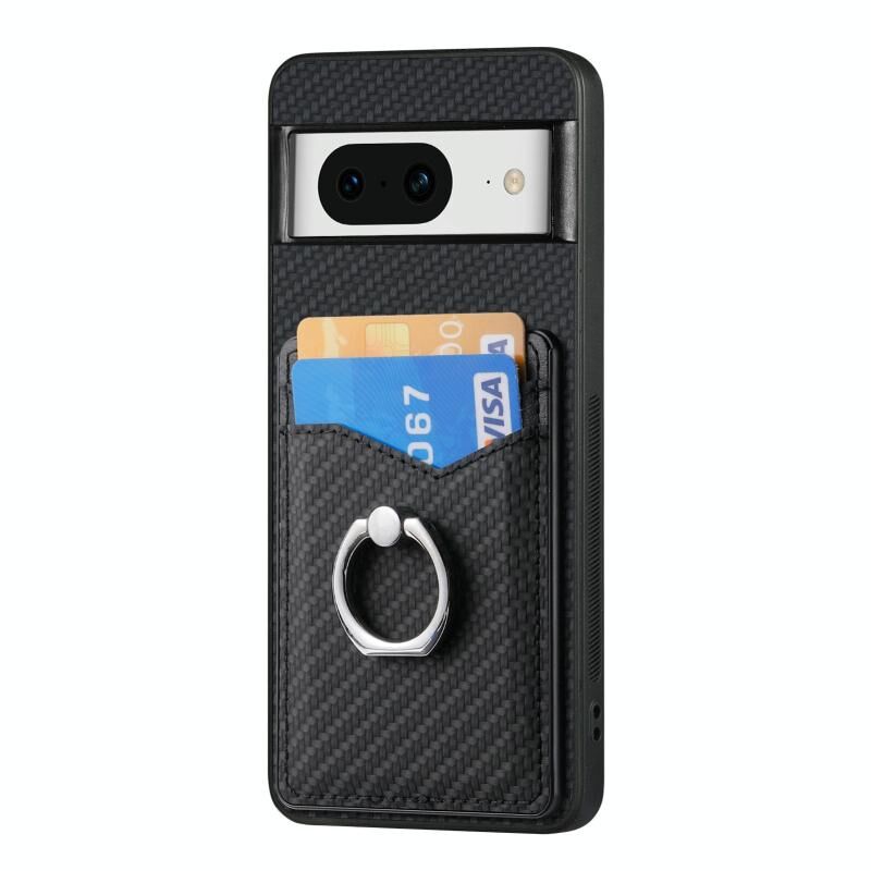 Για το Google Pixel 8 Carbon Fiber κάρτα πορτοφόλι δαχτυλίδι κάτοχος θήκη τηλεφώνου (μαύρο)
