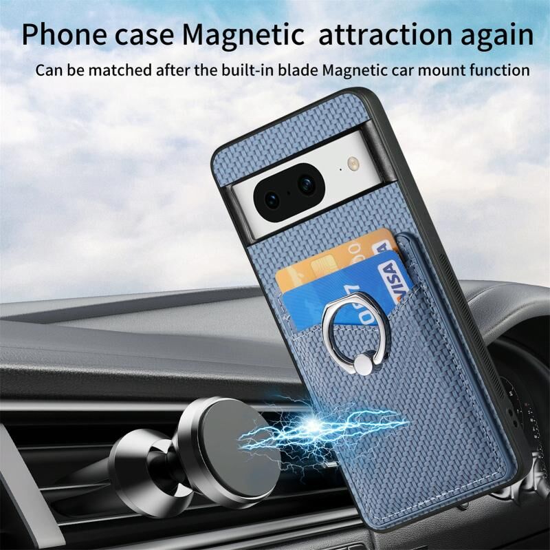 Για το Google Pixel 8 Carbon Fiber κάρτα πορτοφόλι δαχτυλίδι κάτοχος θήκη τηλεφώνου (μπλε)