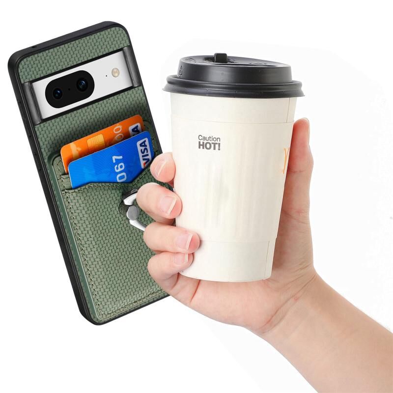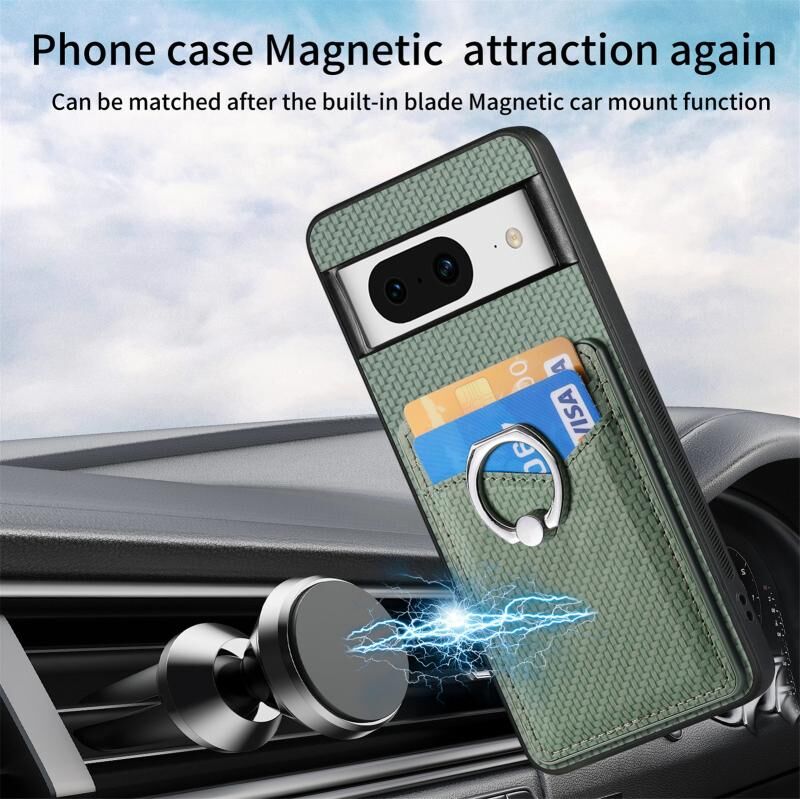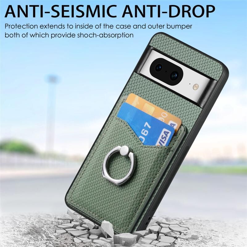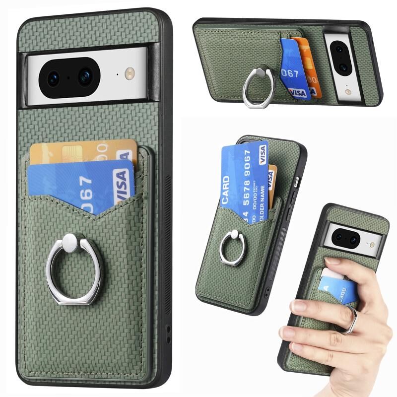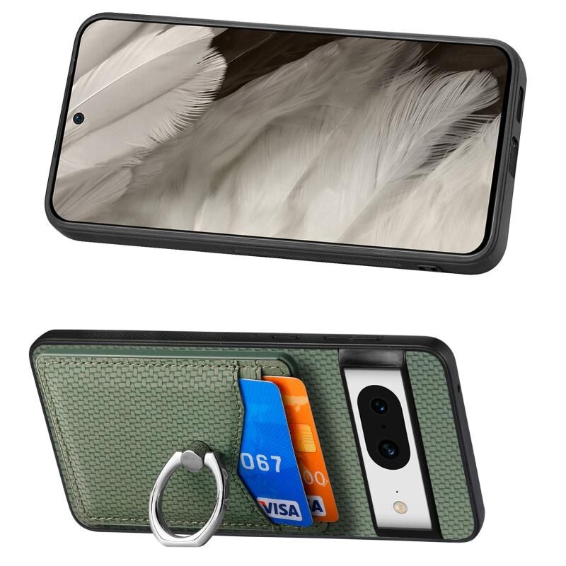 Για το Google Pixel 8 Carbon Fiber κάρτα πορτοφόλι δαχτυλίδι κάτοχος θήκη τηλεφώνου (πράσινο)