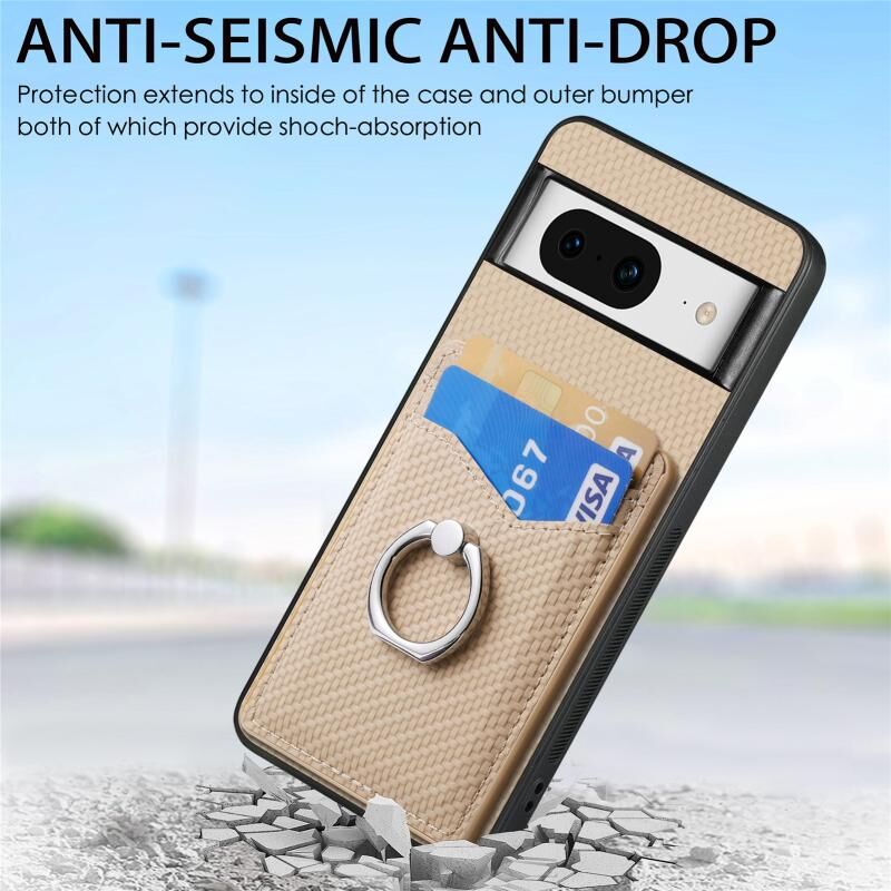 Για το Google Pixel 8 Carbon Fiber κάρτα πορτοφόλι δαχτυλίδι κάτοχος θήκη τηλεφώνου (χακί)