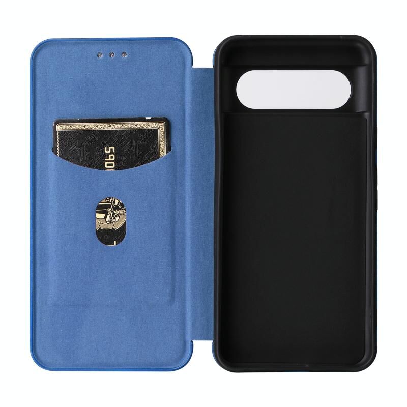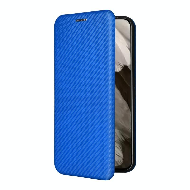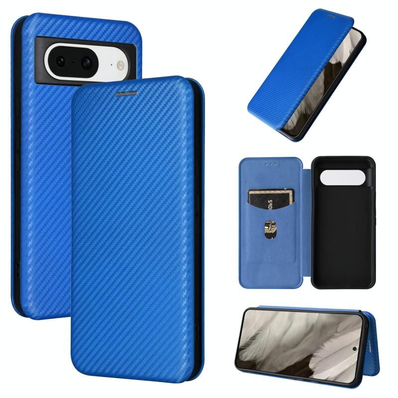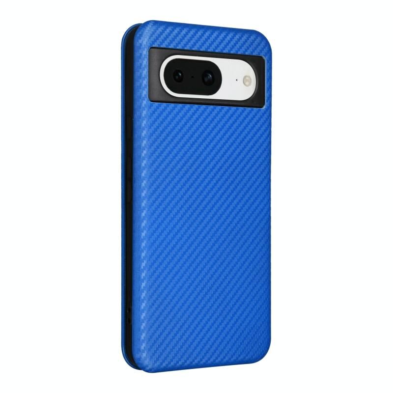 Για το Google Pixel 8 Carbon Fiber Texture Flip δέρμα τηλέφωνο υπόθεση (μπλε)