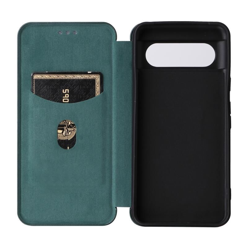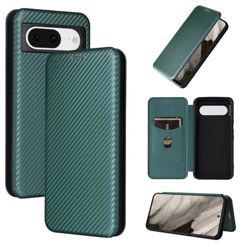 Για το Google Pixel 8 Carbon Fiber Texture Flip δέρμα τηλέφωνο υπόθεση (πράσινο)